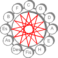 Давайте попробуем сделать какие-нибудь наблюдения, имея под руками такую наглядную систему как кварто-квинтовый круг. Сами по себе проявляющиеся закономерности, может статься, и не будут для Вас новы, но даже Ваши старые знания смогут систематизироваться и стать для Вас проще в применении. А может, Вы обнаружите и что-то неожиданное для себя. Например, у многих учащихся вызывает ощутимые трудности запоминание того, какие ключевые знаки имеют разные тональности. Большинству людей приходится запоминать это простым зазубриванием. Другие при упоминании имени тональности вспоминают ноты тех пьес, которые им доводилось играть. Вот Вам еще один способ: запомнить положение тональности на круге, как на циферблате часов. Само положение укажет Вам количество знаков. А кстати, Вы обратили внимание, что при построении круга (на прошлом занятии) новые ключевые знаки появлялись тоже по квинтам? В соль-мажоре - знак "фа", а в следующем ре-мажоре добавляется "до". Между "фа" и "до" - квинта. Но это просто интересное наблюдение, не более. А вот другое полезное открытие от разглядывания круга: новый, последний знак в правой половине круга всегда оказывается на VII ступени тональности ("фа" в соль-мажоре, "соль" - в ля-мажоре и т.д.) Значит, Вам достаточно запомнить порядок следования знаков, всего-то семь штук, и Вы в две секунды сможете вычислить их количество в любой тональности. Скажем, ми-мажор. Знаки появляются в порядке "фа-до-соль-ре-ля-ми-си". Какой из них будет VII-й ступенью в ми-мажоре? "Ре", четвертый по порядку. Ответ: в ми-мажоре четыре диеза. Чем не способ? Посмотрите теперь в левую, бемольную половину круга. Там закономерность обнаруживается обратная (снова симметричность вездесущая!). А именно: если в диезах последний знак был предпоследней ступенью тональности, то в бемолях, наоборот, предпоследний знак - последняя ступень, то есть, попросту, тоника. Например, в тональности ми-бемоль-мажор три знака: "си", "ми" и "ля". Предпоследний из них - тоника. Следовательно, и здесь Вам просто нужно запомнить порядок следования знаков - и их количество будет вычисляться моментально и легко. Еще одна симметрия. Сравните-ка порядок появления для диезов и для бемолей: